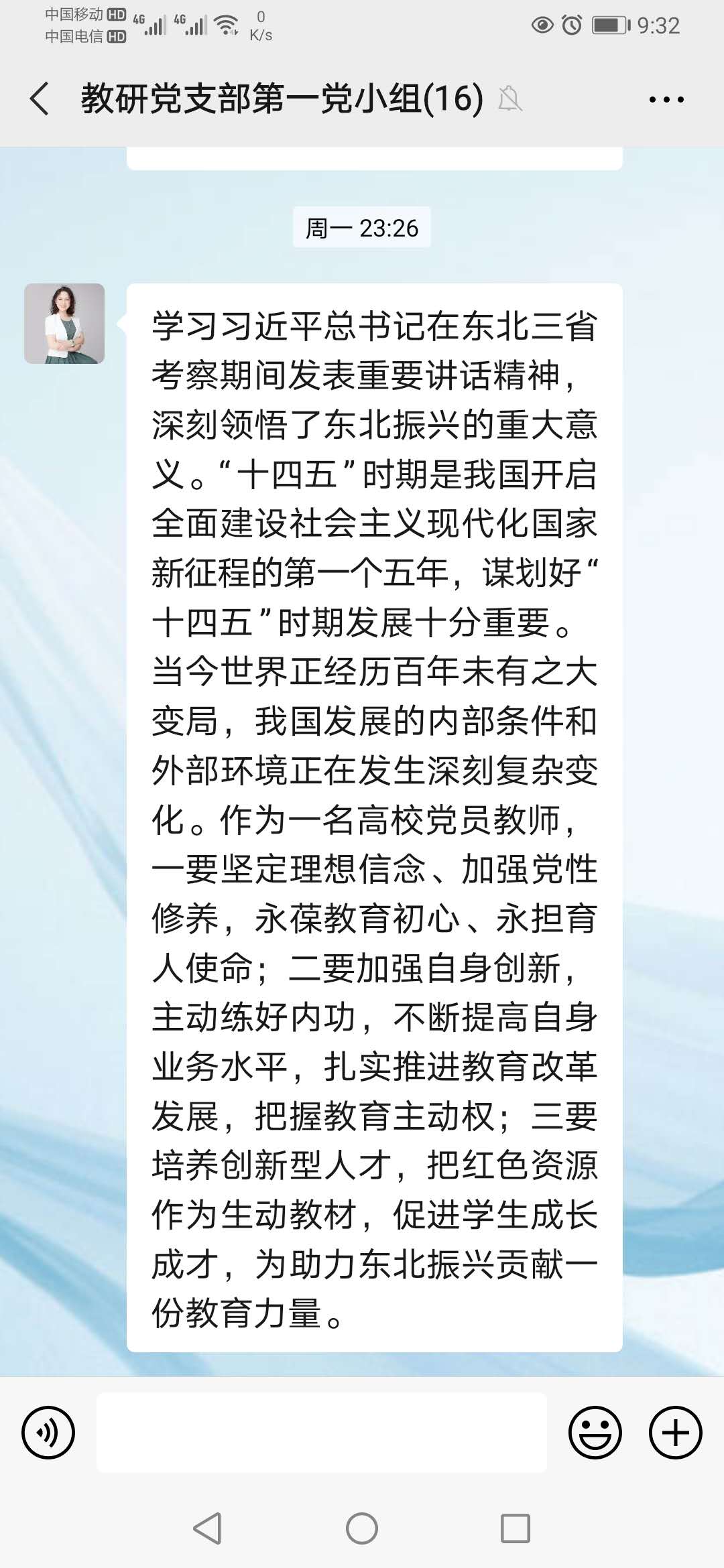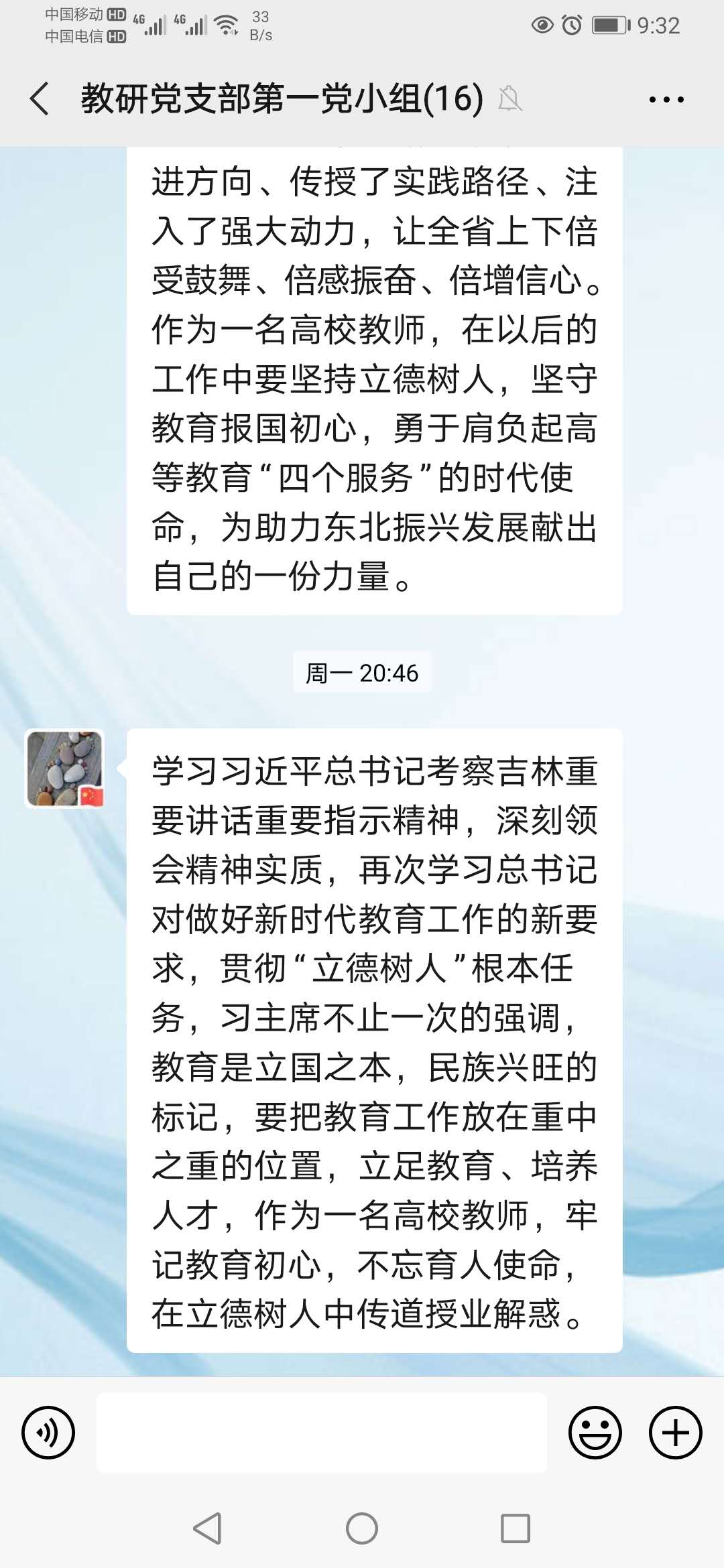 同志们都表示通过学习学习习总书记考察吉林重要讲话精神深受鼓舞,作为高校教师要在实际工作中认真贯彻讲话精神,以身作教书育人,注重培养学生的专业学习能力、创新意识和社会责任感,做一名真正的四有好老师。