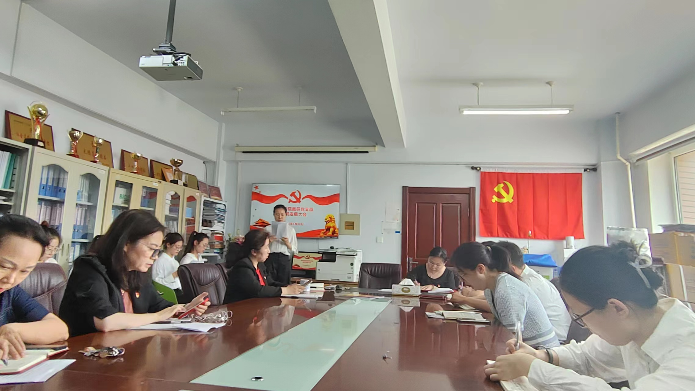 beat365中国官网教研党支部于2023年6月26日下午12:30于明德楼321以会议室召开党员大会,会议由支部书记张红石主持,本次大会讨论关于康永姣、党雪、李思璇3名同志的入党问题,并集中进行理论学习,支部34名正式党员参加了本次会议。