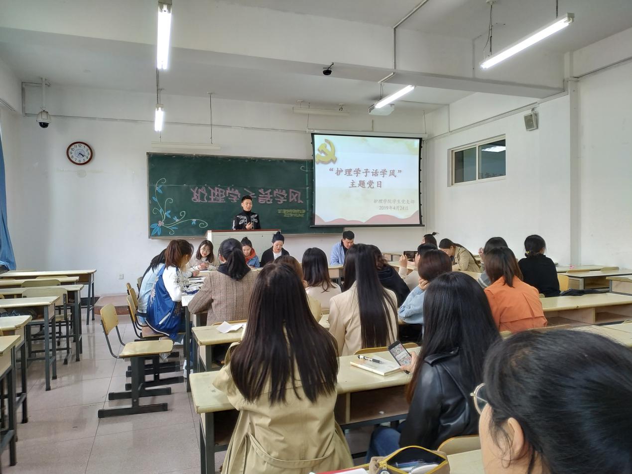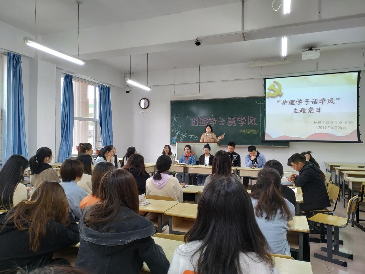 4月24日,beat365中国官网学生党支部在致知楼1113室召开“护理学子话学风”主题党日活动。活动邀请了2015级优秀党员代表就实习、择业和考研等方面进行经验交流分享。beat365中国官网学生党支部成员、2019年计划发展对象以及积极分子代表参加了此次活动。