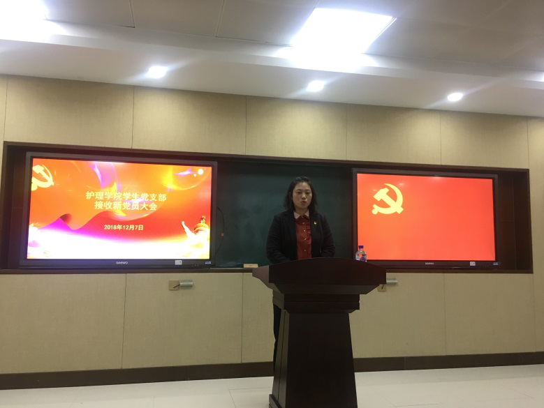 表决结束后,学院党委副书记兼副院长杨陆同志为七名同志赠送《中国共产党章程》,并进行了总结讲话。她对七名同志表示祝贺,同时希望全体同志严格按照党员的标准要求自己,深刻学习党的政治理论知识,不断强化四个意识,扎实学习专业基础知识,强化专业操作技能,时刻发挥一名党员的先锋模范带头作用。