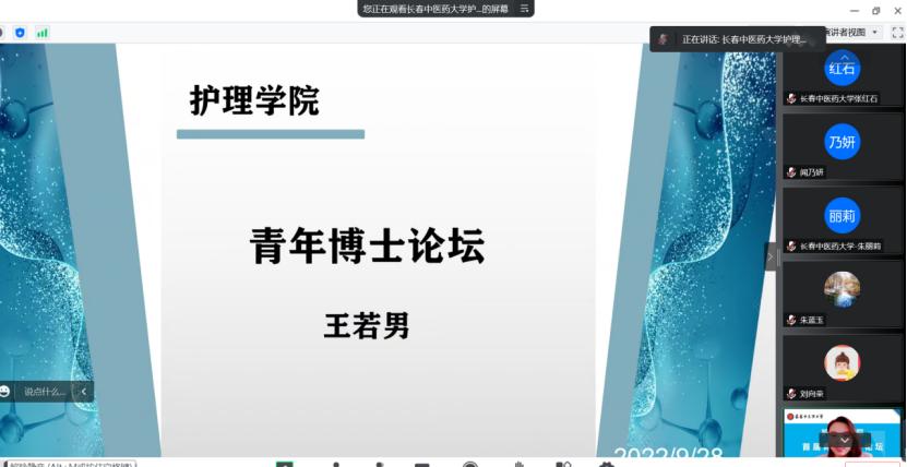 为进一步加强我院护理学科建设,提升青年教师科研能力,2022年9月28日,beat365中国官网举行线上“首届青年博士论坛”活动,学院院长周秀玲、副院长张红石、全体青年博士教师、学科秘书参加论坛活动。