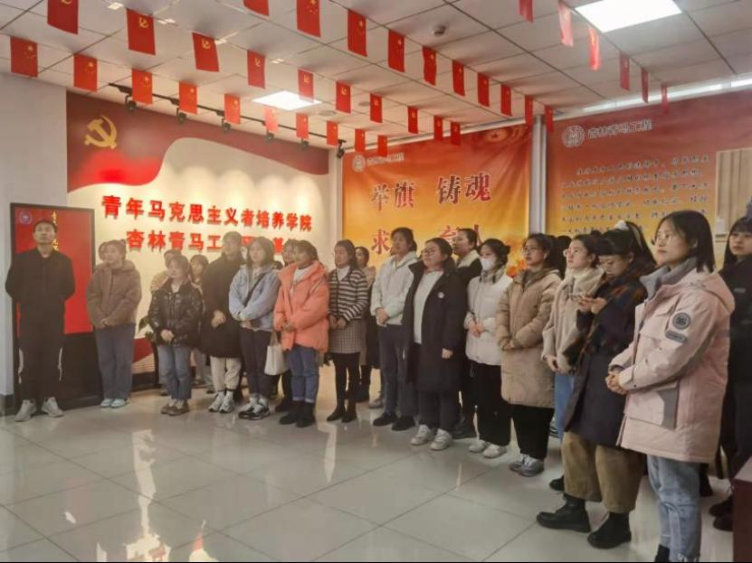 参观开始,宣讲员从培养理念和选拔机制等方面为大家详细介绍了“杏林青马工程”的基本情况。基地采用的是“14235”的培养模式,其中宣讲员为大家特别讲解了培养模式中的“五行”计划及其对应的具体实施方案,充分展现了我校深刻贯彻落实培养优秀青年的这一重大举措。之后,在宣讲员的带领下,同学们先后参观了杏林青马成果图片展、多功能教室、沙龙活动室等教学活动场所,深刻感受到了杏林青马学员学习马克思主义的浓厚氛围。