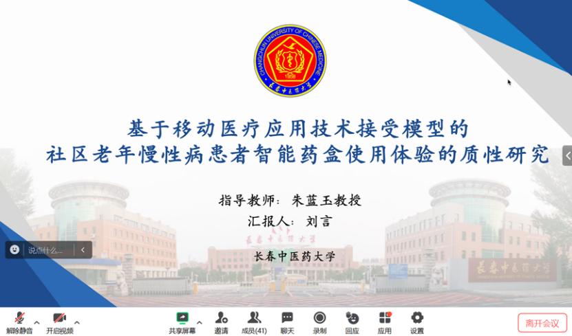 刘言同学分享的文献为《基于移动医疗应用技术接受模型的社区老年慢性病患者智能药盒使用体验的质性研究》,本文目的主要是了解社区老年慢性病患者智能药盒的使用体验,为进一步增强用户粘性和优化智能药盒提供新思路,采用目的抽样的方法,选取重庆市6个社区的16例老年慢性病患者进行半结构式访谈,应用 Colaizzi七步法进行资料分析,结果表明社区老年慢性病患者使用智能药盒的体验可归纳为4个主题:“感知有用性”层面的“促进健康”和“肯定智能药盒功能”;“阻碍易用性”层面的“接纳意愿不高”和“技术焦虑”,由此得出结论:护理人员应积极突破“信息茧房”,增强内容的科学性,借鉴欧美等国不良事件自我报告工具鼓励患者积极上报,同时提升临床护士保护患者隐私的意识。