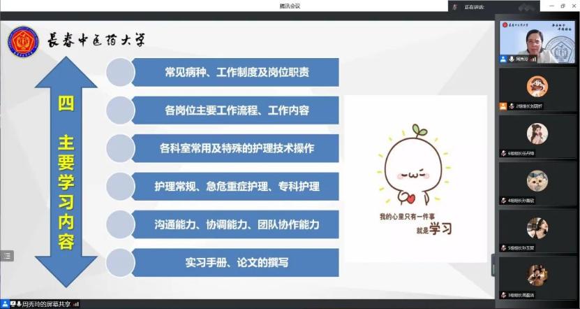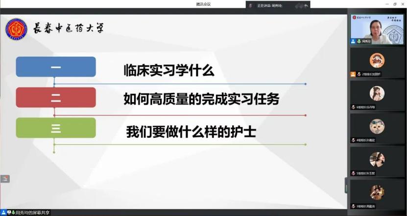 会议伊始,周秀玲老师为学生们分享了一段视频,带领同学们全面认识在新冠肺炎疫情蔓延之际,护士这一职业的重要性。会上,周秀玲老师从“临床实习学什么”、“如何高质量的完成实习任务”、“我们要做什么样的护士”三个方面展开讲解,并结合临床实际案例,为同学们详细介绍了即将作为一名实习生应当做好哪些准备,嘱咐学生们需要明确目标、制定实习计划,同时强调了实习期间临床思维的重要性和必要性。