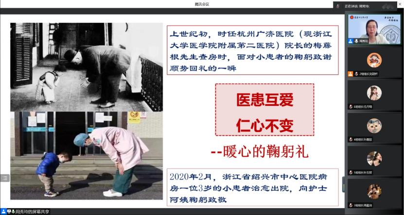 最后,周秀玲老师通过一组跨越时空的医患照片,告诉同学们无论在护理事业的哪个一阶段,都要秉承着南丁格尔的精神,练好各项专业本领,不负韶华,开启新起点、新征程,用心去做一名优秀的护士。