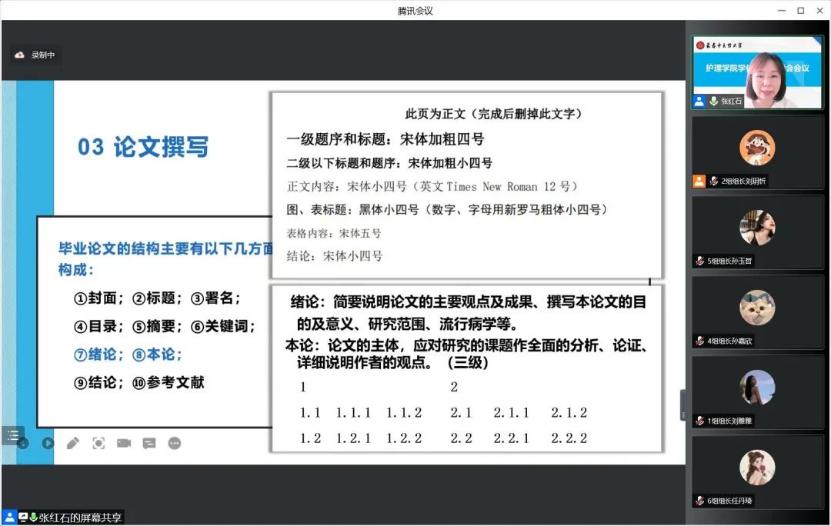 为提升护理学专业学生撰写毕业论文的写作能力,beat365中国官网于2022年5月31日8:30在腾讯会议召开了线上2023届毕业生毕业论文写作讲座。本次讲座由beat365中国官网副院长张红石主讲,2023届全体毕业生参加此次报告会。