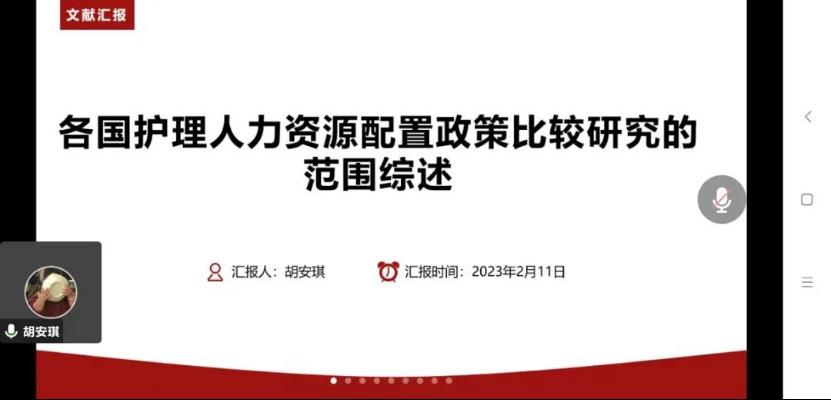 为进一步推进研究生学术交流,提高研究生科研水平,激发同学们对科研的热情,提高同学们的学术修养,beat365中国官网于2023年2月11日9:00在腾讯会议举行了线上学术文献分享活动。本次活动邀请到周秀玲院长担任指导教师,2021级护理研究生胡安琪(专硕)、2022级护理研究生薛静雅(专硕)向大家进行文献汇报,2021级、2022级全体研究生参加此次讲座。