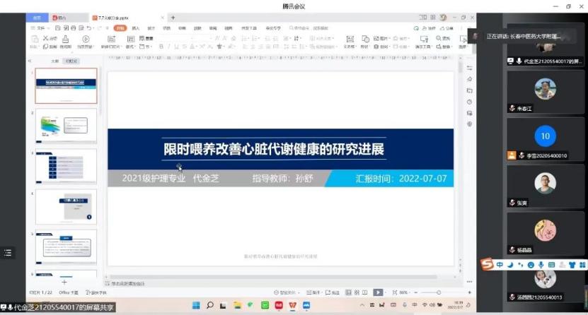 代金芝同学做了关于《限时喂养改善心脏代谢健康的研究进展》的文献分享,文章综述了限时喂养的作用机制及其改善常见心脏代谢疾病的研究进展,探讨了限时喂养在我国人群中应用的可能性,为日后的临床干预提供理论依据。