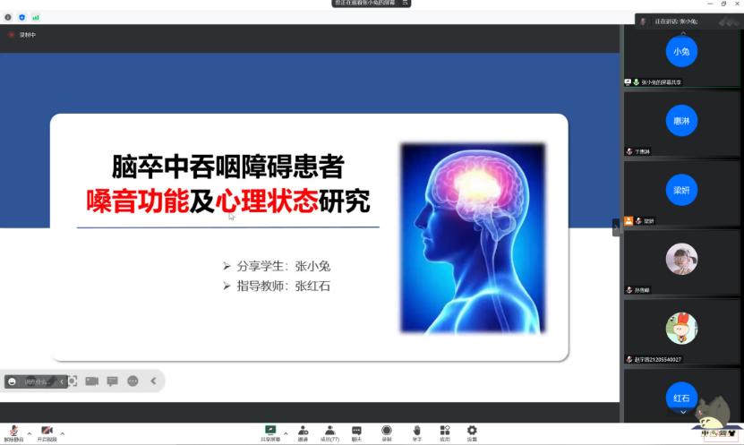 张小兔同学做了关于《脑卒中吞咽障碍患者嗓音功能及心理状态研究》的文献分享,文章通过便利取样法选取337例脑卒中患者,通过洼田饮水试验和标准吞咽功能评估分为吞咽障碍组122例与吞咽正常组215例,比较吞咽障碍与吞咽正常的脑卒中患者嗓音功能及心理状态。得出脑卒中吞咽障碍患者嗓音功能受损及焦虑抑郁情绪显著高于吞咽正常患者,需开展吞咽-嗓音-心理联合康复的结论。