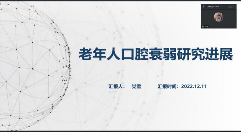 党雪同学分享的文献为《老年人口腔衰弱研究进展》,文章从口腔衰弱的概念、评估工具、影响等方面对口腔衰弱进行综述,以期推动老年人口腔衰弱的研究,增强医护人员对老年人口腔衰弱的认识,为进一步探究老年人口腔衰弱奠定基础,促进健康老龄化的实现。