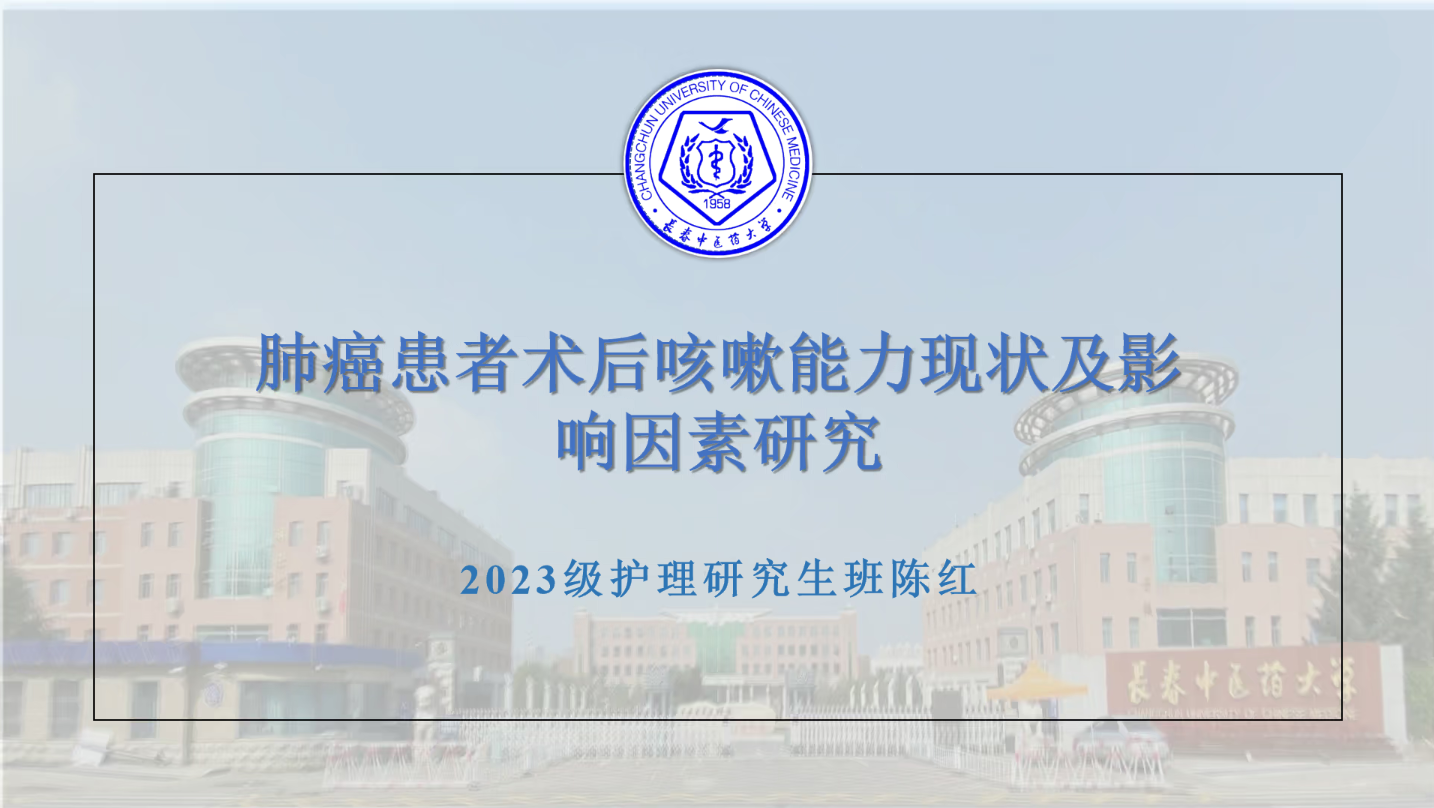 陈红同学汇报的文献为《肺癌患者术后咳嗽能力现状及影响因素研究》,文献主要了解肺癌患者术后有效咳嗽能力现状,为加速患者术后康复提供参考。采取便利抽样方法选取肺癌手术患者作为研究对象,在术后24h评估患者咳嗽能力,并收集患者一般资料、恐动症情况,分析肺癌患者术后咳嗽能力的影响因素。并得出结论,肺癌术后仍有部分患者咳嗽能力弱,需对患者进行有效咳嗽健康指导,客观动态评估咳嗽能力,针对影响因素加强护理干预,以提高肺癌患者术后咳嗽能力,促进术后康复。