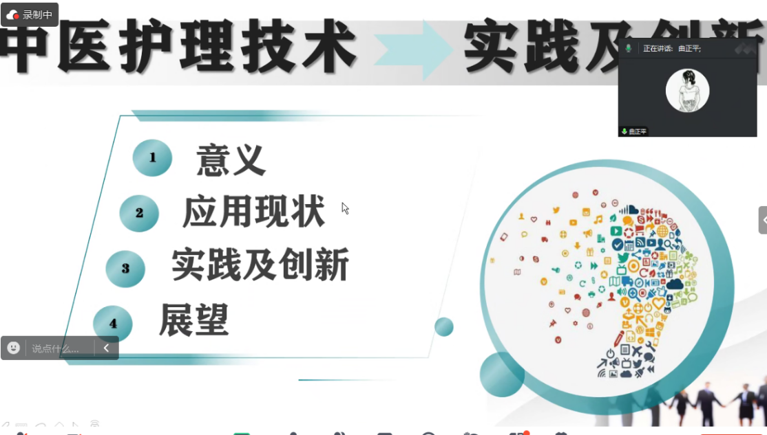 在讲座中,曲正平老师以 “中医护理技术实践及创新” 为主题,从四个方面展开介绍。中医护理技术历史悠久,蕴含着中华民族数千年的健康智慧,它承载着先辈们预防疾病、促进康复和养生保健的宝贵经验。老师阐述了中医护理技术的重要意义,详细讲解了艾灸、拔罐、穴位敷贴、耳穴压豆、中药溻渍等多种传统中医护理技术的应用情况,分析了这些技术的创新,如器具创新上,艾灸盒变得更安全便捷,抽气式拔罐器操作简便;流程创新方面,穴位敷贴配方工艺优化,耳穴压豆操作更规范精准等。中医护理技术有着无限的发展潜力。随着科技的不断进步,中医护理技术将与现代科技深度融合。曲正平老师强调,中医护理历史悠久,其技术创新是弘扬中医药文化、推动中医药事业发展的关键路径之一。因此,我们需围绕临床问题深入思考,积极开展多学科交流与借鉴,充分发挥中医护理特色,拓宽思维模式,持续改进中医护理技术,以适应不断发展的医疗需求,为中医药事业发展注入新的活力。