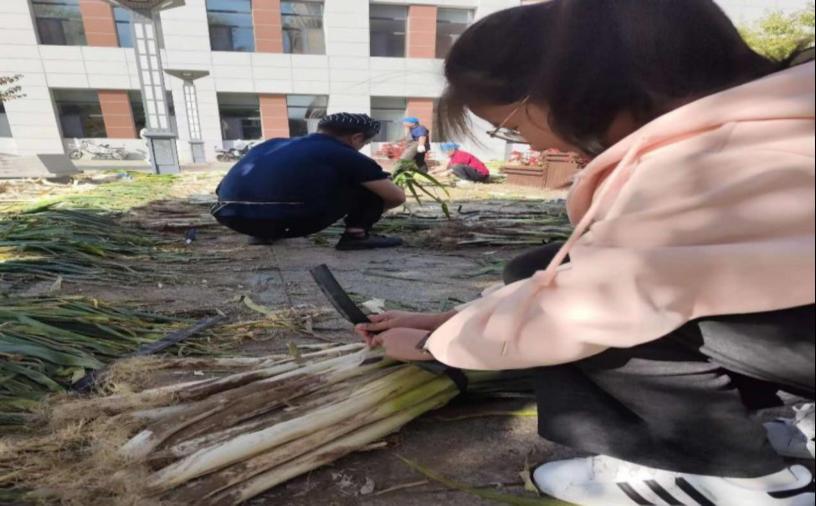 朱宇宽同学帮助杏林食堂的叔叔阿姨,晾晒蔬菜,助人为乐的笑容始终在她的脸上绽放。