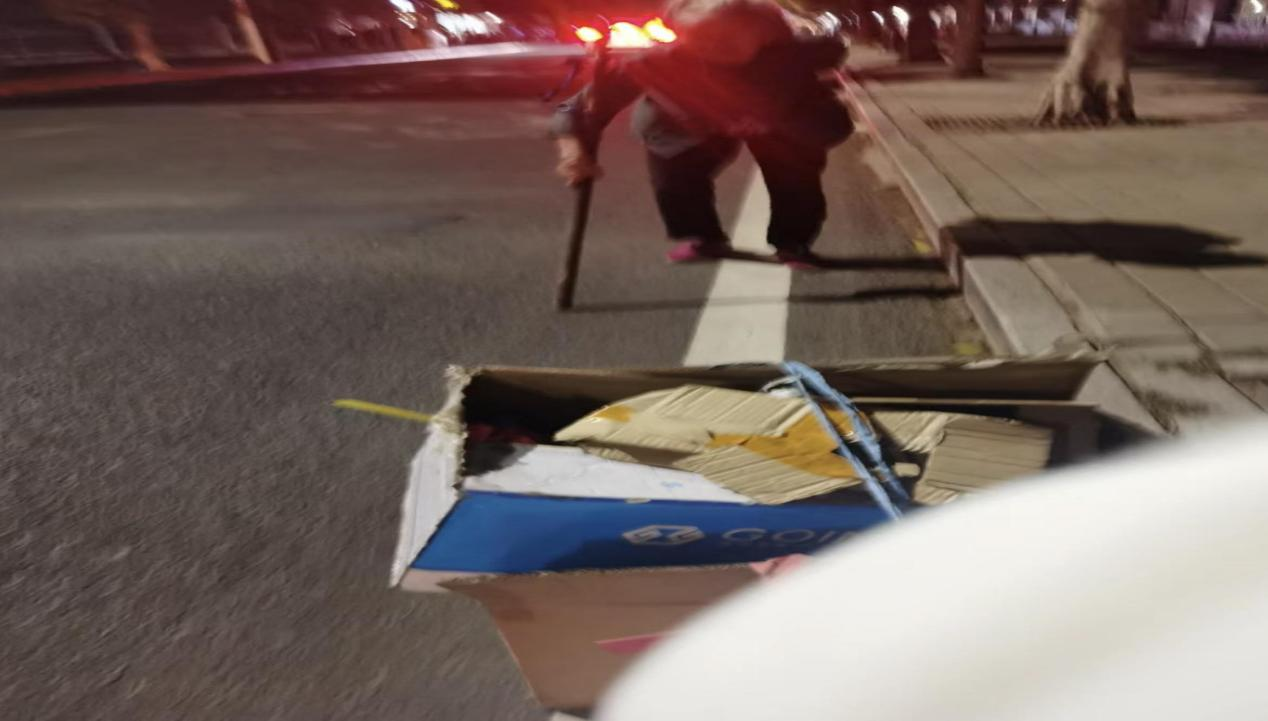 姚晨昕同学帮助路旁老奶奶拿纸壳,帮扶老人过马路,用温情和关爱点亮了行人回家的路