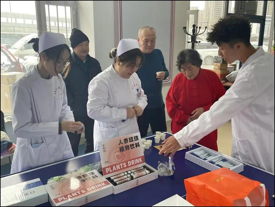 活动现场热闹非凡,志愿者们积极穿梭在社区的各个角落,耐心询问居民们的身体状况,并为居民们进行量血压、刮痧、按摩等基础护理服务。面对居民的询问,志愿者们用所学知识详细解答,指导他们正确的饮食和日常保健方法,同时向大家科普日常保健的要点。在志愿服务之余,服务团成员通过简单易懂的方式讲解了人参的功效及益处,将带来的人参相关产品分发给社区居民,让大家体验其独特风味。居民们纷纷为这些充满热情和专业素养的志愿者点赞。