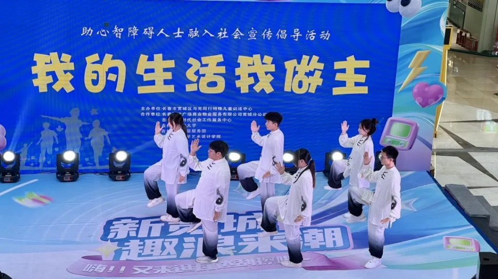 随后,服务团成员进行了二十四式太极拳展演,通过以柔到刚,以刚到柔的转换过程,展示顺应自然,追求平衡和谐的理念。以此希望社会能够提高对这些“星星的孩子”的理解度与包容度,帮助孩子们更好的适应和融入社会,享受更加温暖平等的成长发展机会。