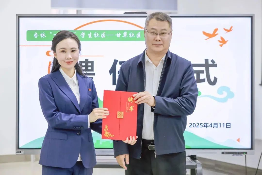 学校党委副书记高文义出席活动,并为孔祥慧颁发社区成长导师聘书。