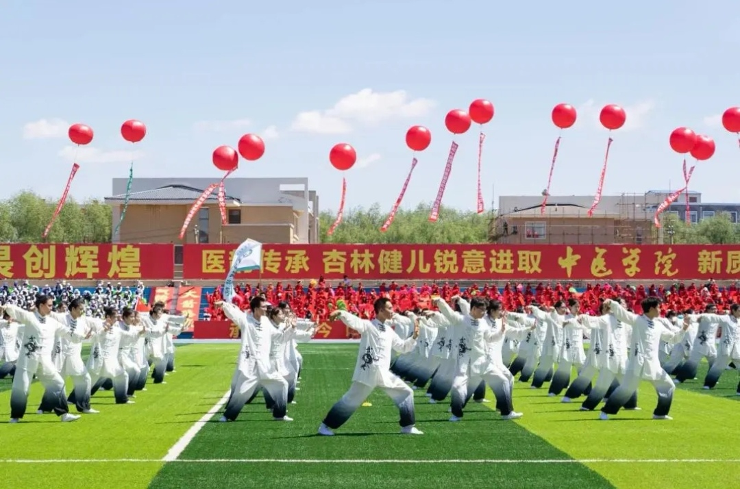 号角奏满运动颂歌!同学们怀自信昂扬之心态、行连贯舒展之动作、示永不言弃之信念。老师们更是整装齐上、蓄势待发,奉上了开合有序、刚柔并济之太极盛宴。广播体操和太极拳团体的每帧动作都犹如麦浪翻滚自如,他们以汗水为基,展青春之精神、扬护理之风采,气宇轩昂,乘风破浪!