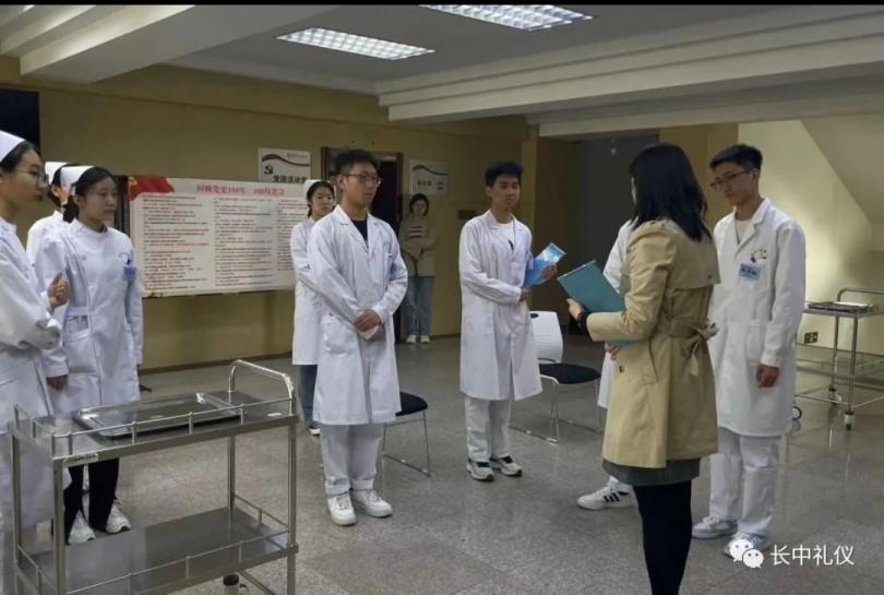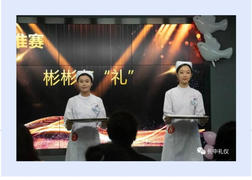 选手们在比赛过程中做着专业动作,穿着得体,充满活力。选手们从仪容、仪表、站姿、行走、端坐姿态、持病历夹、端治疗盘、推治疗车、蹲姿等方面展示自我。对护士礼仪在临床护理工作中的应用进行精彩的演绎。