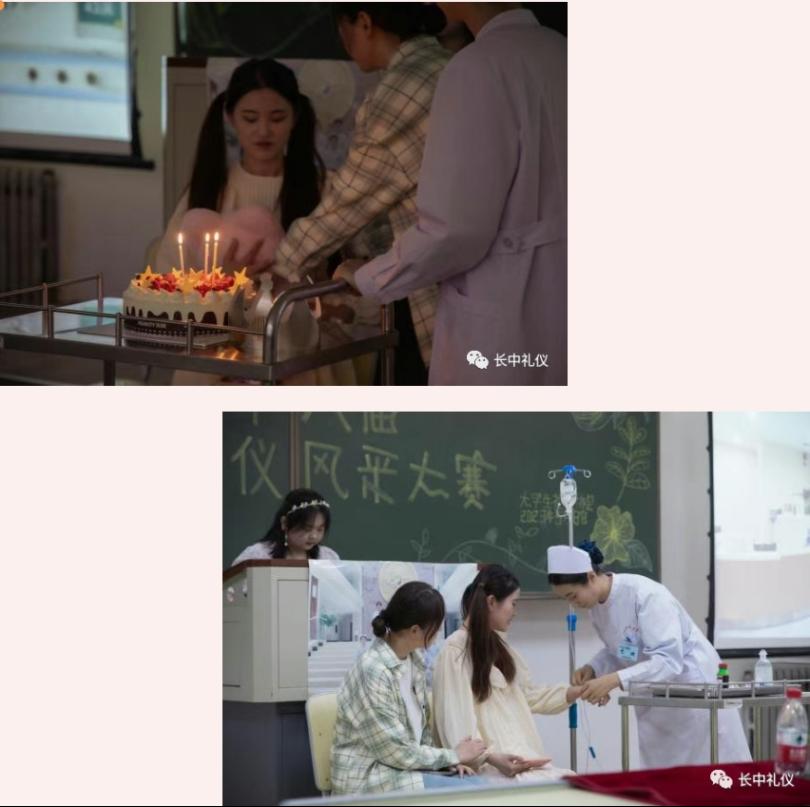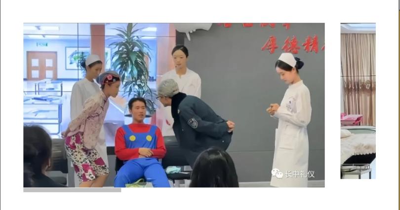 在情景剧过程中将礼仪展示融入其中,展现护士的职业素养,歌颂南丁格尔精神,致敬医护工作者。护理礼仪使护士在工作中充满自信,强化的责任感,端庄优雅的仪表形象,有助于病人对护士产生信任,亲切温暖的语言举止,是加强护患沟通的桥梁。