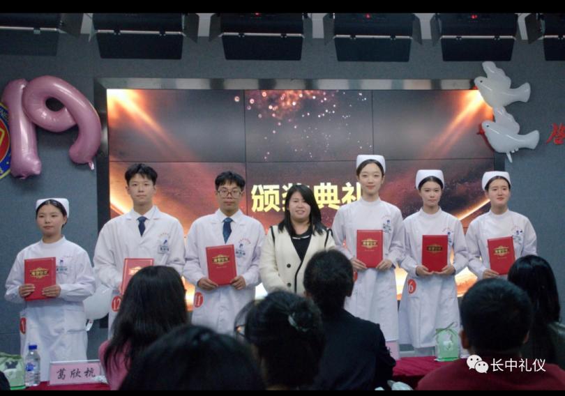 为庆祝5.12国际护士节 ,诠释护理行业仁爱敦行的职业内涵,展示护理学子博学自强的亮丽风采。大学生礼仪协会于2023年5月8日在行知楼2104教室举行了第十八届护士礼仪风采大赛。此次大赛包括22级一共6个班级参与,活动特邀请我院人文护理教研室主任黄卫东老师担任评委,学生办公室辅导员赵彧老师和杨永明老师担任嘉宾。