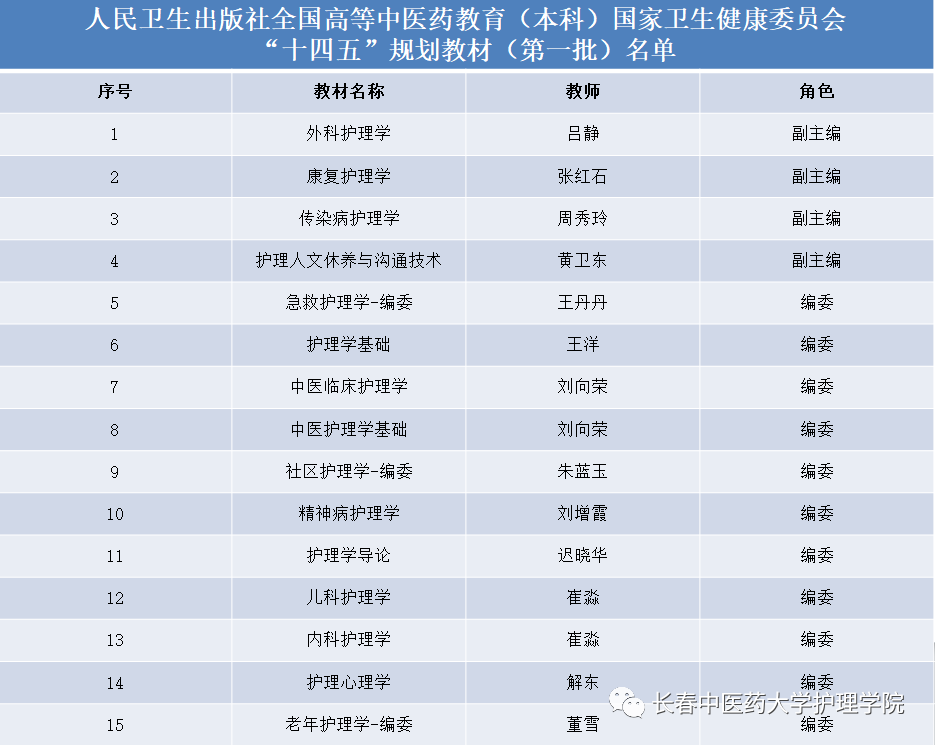 2021年3月20日,为做好新一轮高等中医药教育教材建设工作,人民卫生出版社、中国中医药出版社等出版单位全面启动了“十四五”规划教材编审遴选工作,beat365中国官网组织全体教师积极申报,经遴选学院共获2部教材主编资格,12部教材副主编资格,1部教材编写秘书资格,19部教材编委资格。