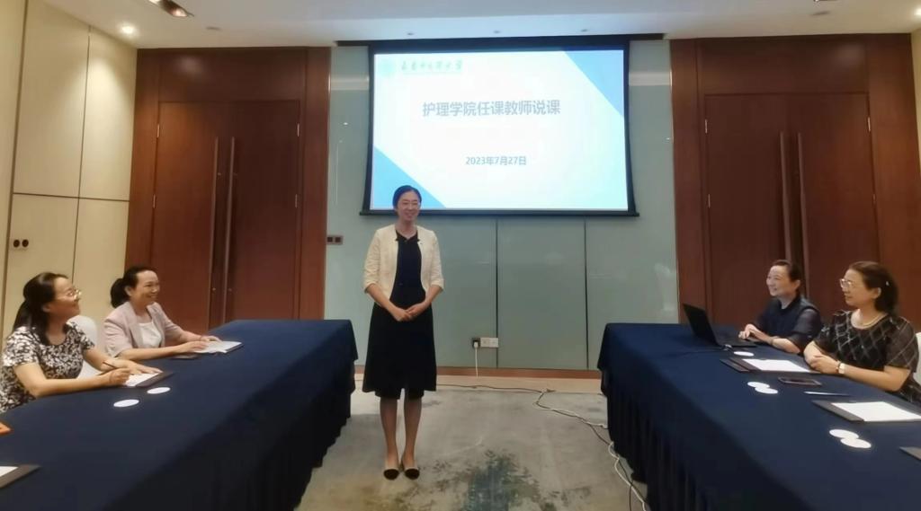 第一阶段由部分教研室主任、课程负责人进行说课,把握课程整体思路及方向。会上,各位教师对自己讲授课程进行说课,《护理学基础》《护理礼仪与人际沟通》《老年护理学》《护理学导论》《外科护理学》等课程从课程定位、课程设计、教学设计、考核评价四个方面全面系统地讲解,并明确课程下一步工作要求和工作计划。