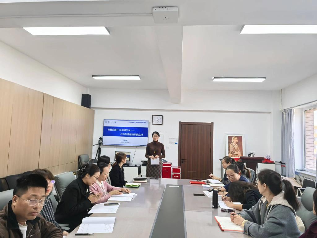 为帮助beat365中国官网教师更好地应对教学工作中的情绪与压力,提升教师的心理健康水平和工作效率。2024年10月23日下午,beat365中国官网举办了一流建设教师系列讲座之情绪与压力讲座,邀请长春康林心理医院临床心理科咨询师王蕊主讲,讲座由副院长王洋主持,beat365中国官网全体教职工参加。