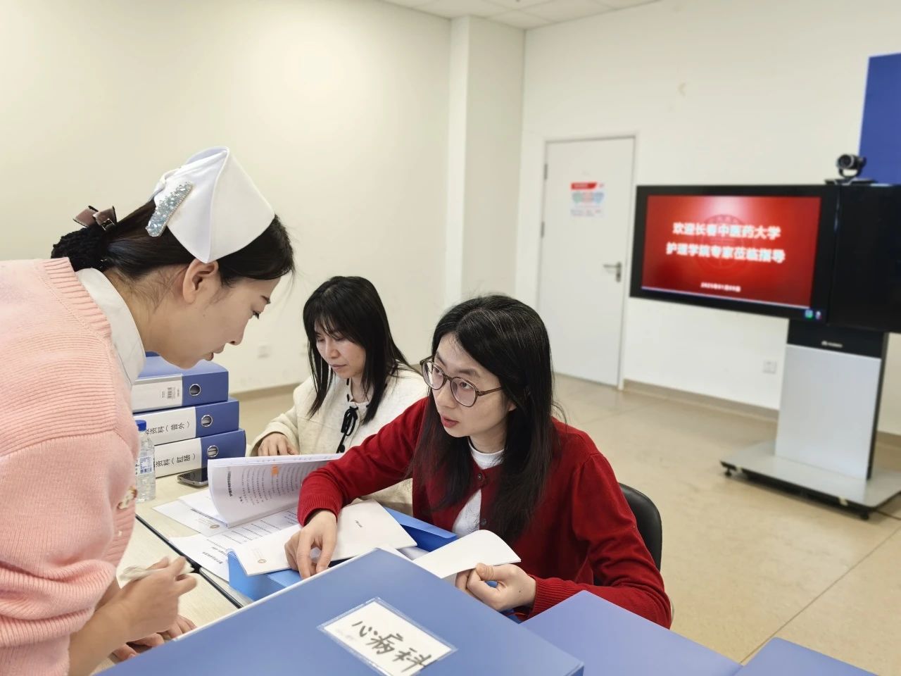 副院长王洋、教学秘书顾颜、教师王若男