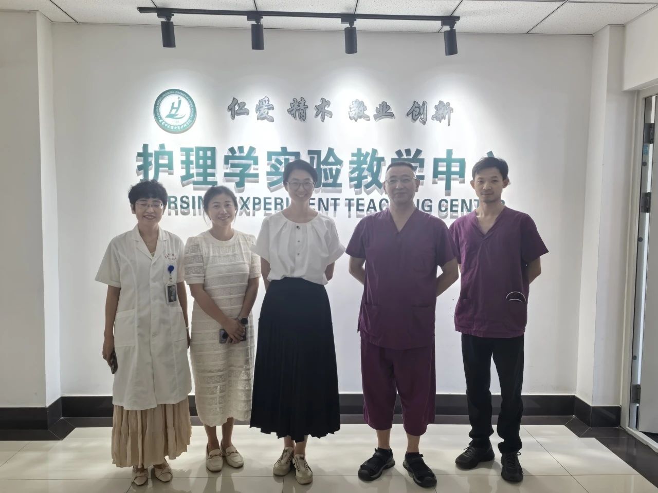 8月29日,长春市朝阳区南湖街道南湖第一社区卫生服务中心孔宪国副院长,魏庆辰护士到beat365中国官网实验教学中心走访参观,beat365中国官网副院长王洋、教学秘书顾颜、创实中心陈晓热情接待了孔副院长一行。
