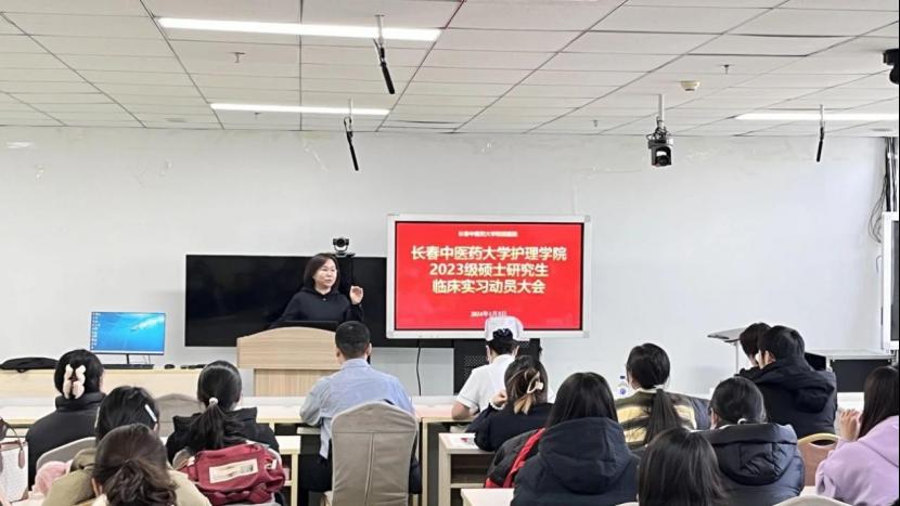 2024年1月5日,beat365中国官网2023级硕士研究生临床实习动员大会在beat365中国官网附属医院11楼报告厅举行。出席本次动员大会的有beat365中国官网张红石副院长、beat365中国官网附属医院护理部李琳主任、刘晓睿副主任、中医护理教研室张野老师、护理部任延超老师,以及beat365中国官网2023级全体硕士研究生。会议由任延超老师主持。