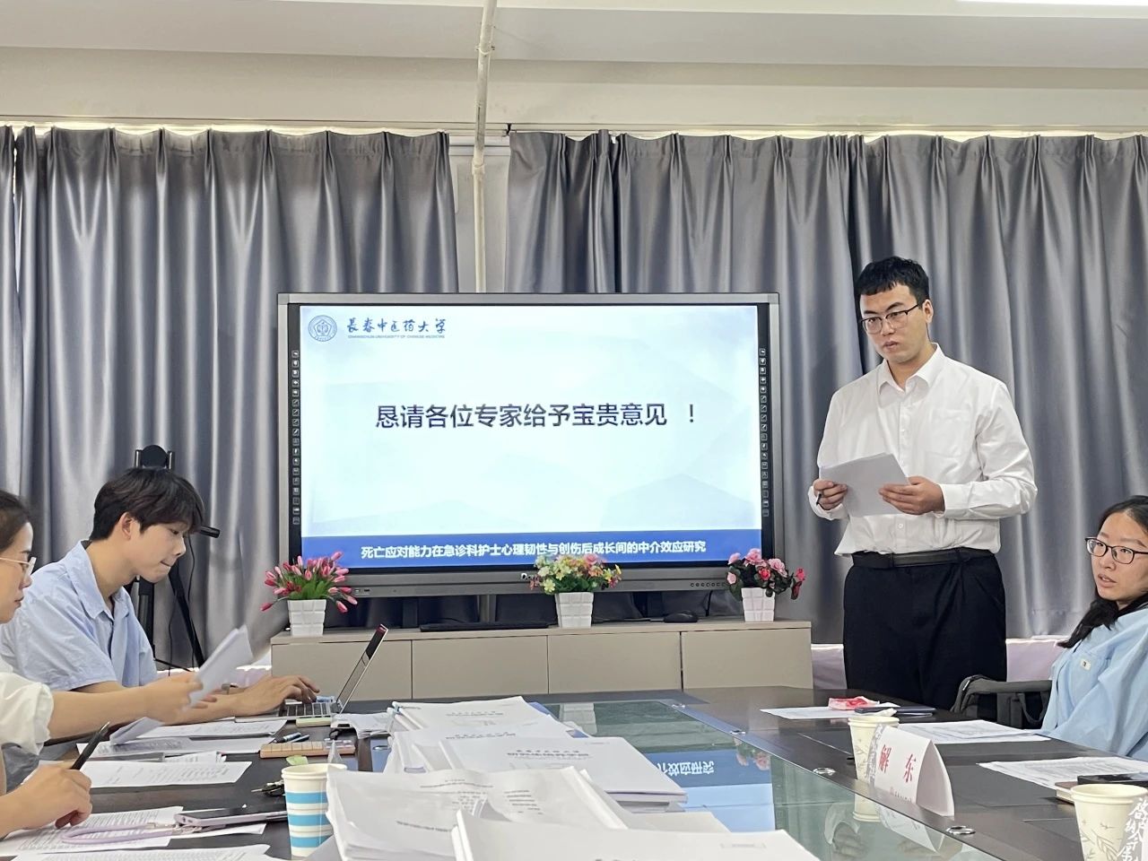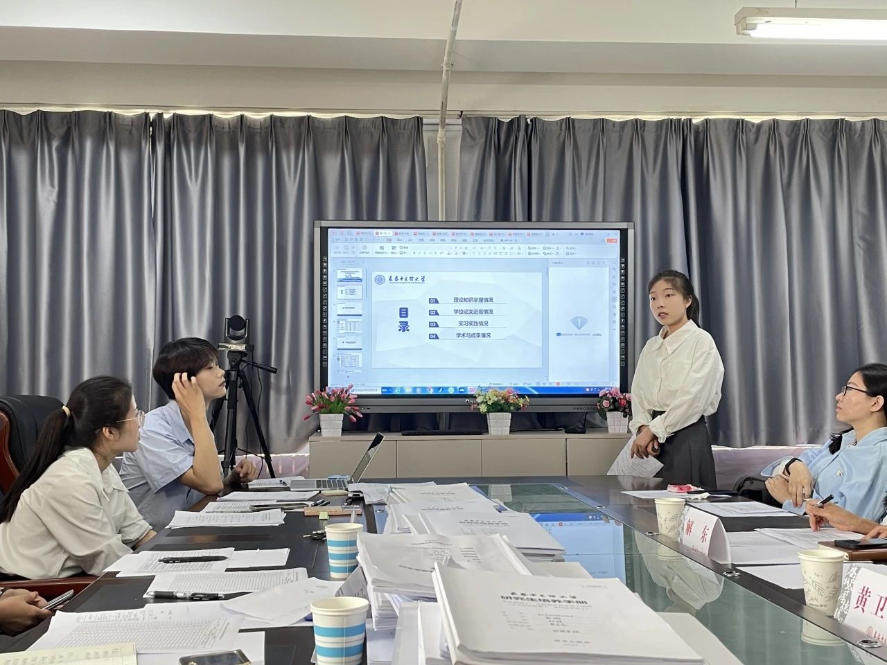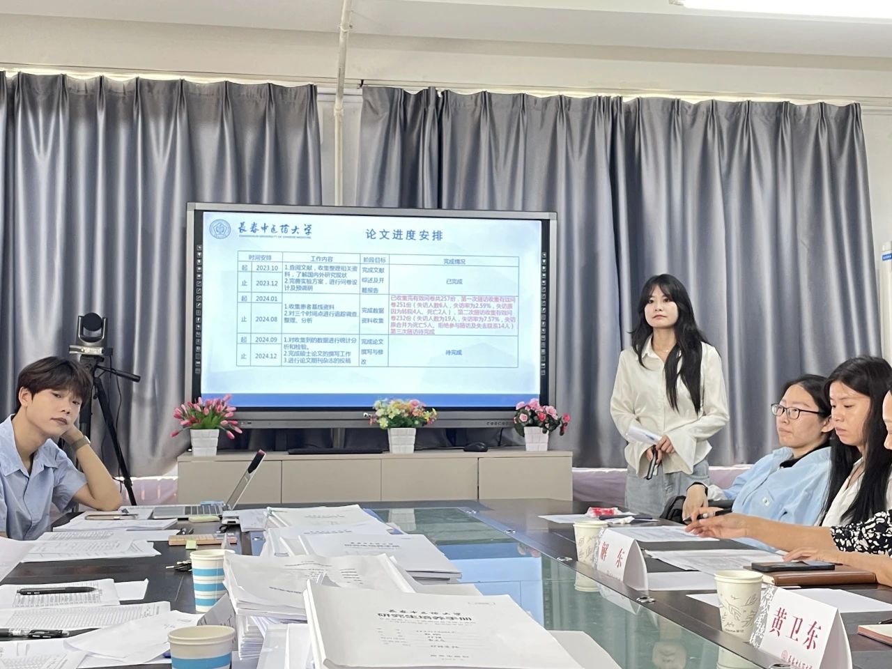 中期考核答辩会上,37名硕士研究生以PPT形式,从理论知识掌握情况、学位论文进展情况、实习实践情况、学术与成果情况等方面进行汇报。考核组专家针对汇报内容进行点评和提问,并对后续学位论文开展提出指导性意见和建议。最终经考核组专家评议和表决,一致同意37名硕士研究生顺利通过中期考核。