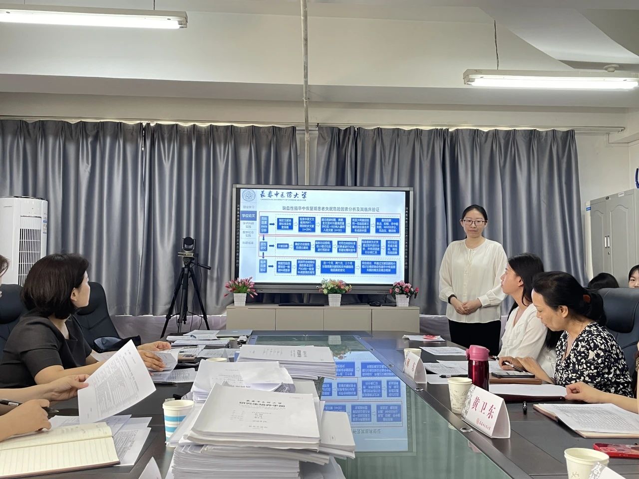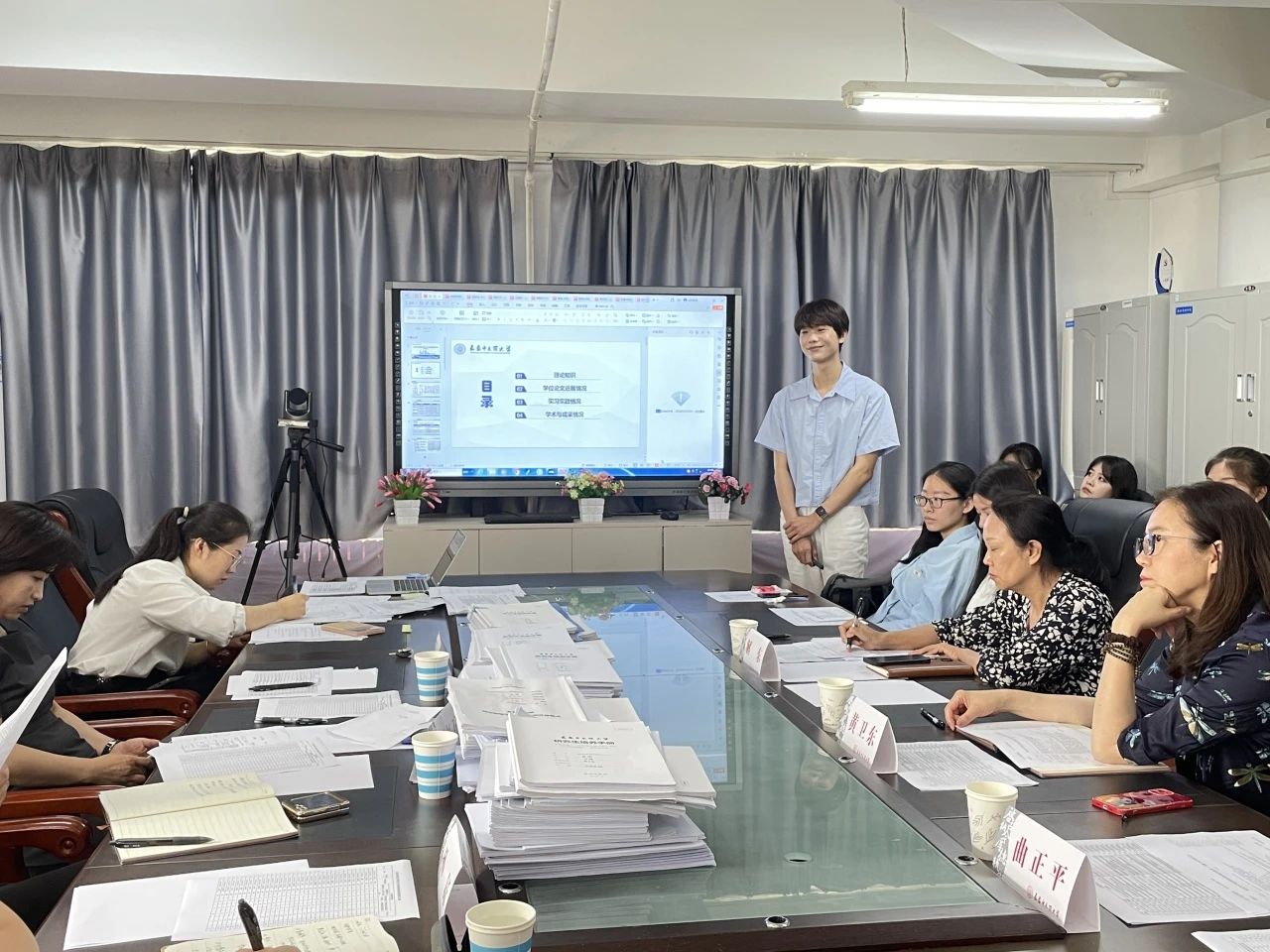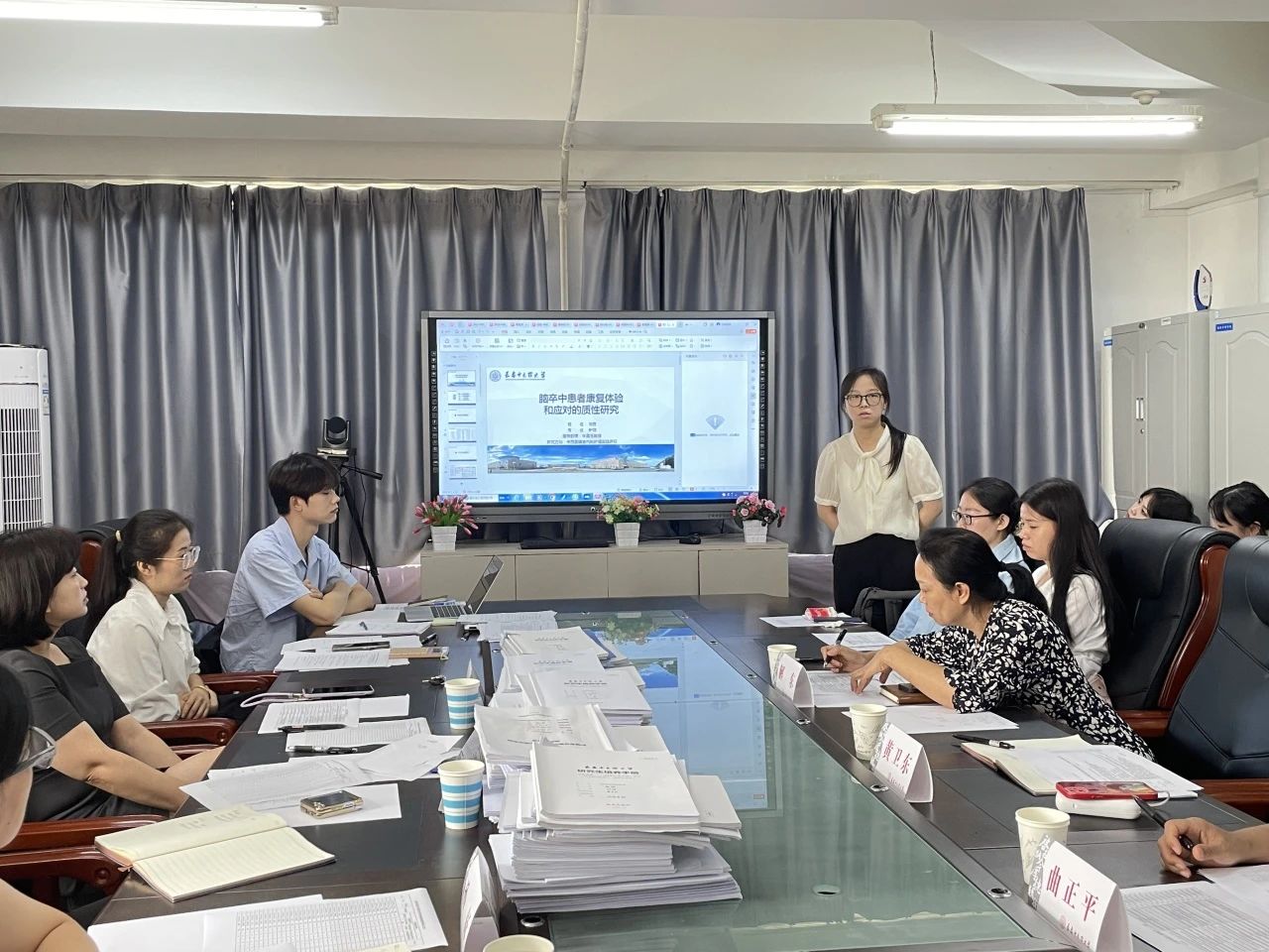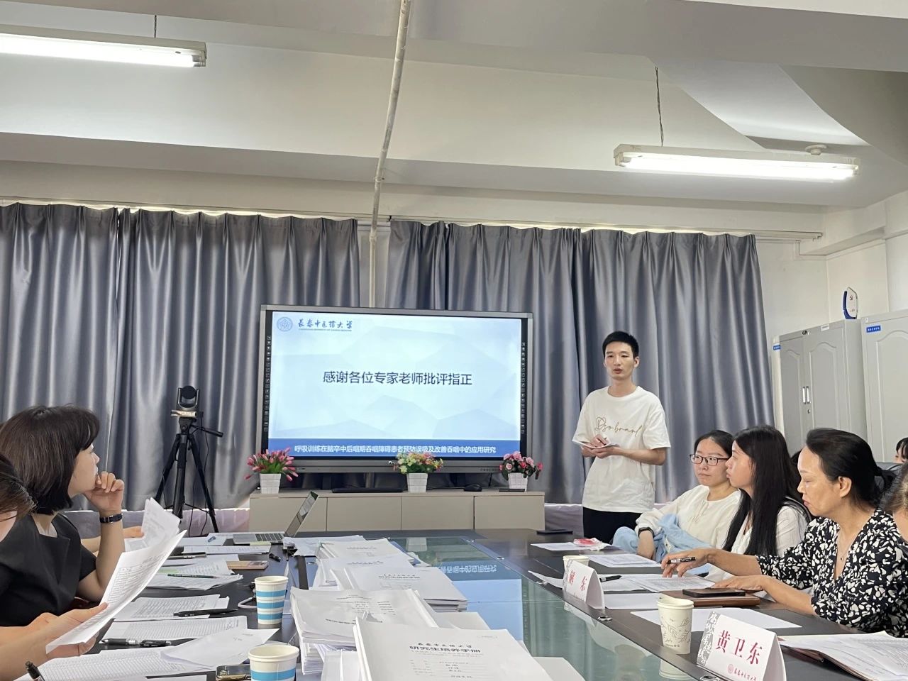 中期考核答辩会上,37名硕士研究生以PPT形式,从理论知识掌握情况、学位论文进展情况、实习实践情况、学术与成果情况等方面进行汇报。考核组专家针对汇报内容进行点评和提问,并对后续学位论文开展提出指导性意见和建议。最终经考核组专家评议和表决,一致同意37名硕士研究生顺利通过中期考核。