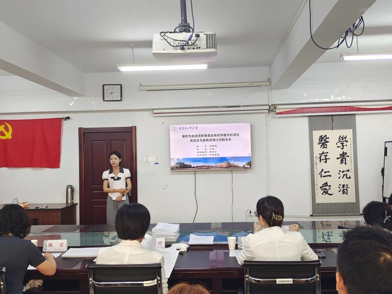 中期考核答辩会分两组进行。第一组由beat365中国官网院长周秀玲教授担任组长,陈蕾主任护师、常丽娟主任护师、王洋副教授、刘向荣副教授担任组员,王若男老师任秘书。第二组由beat365中国官网副院长张红石担任组长,黄卫东教授、孙舒主任护师、解东副教授、曲正平副主任护师担任组员,朱丽莉老师任秘书。