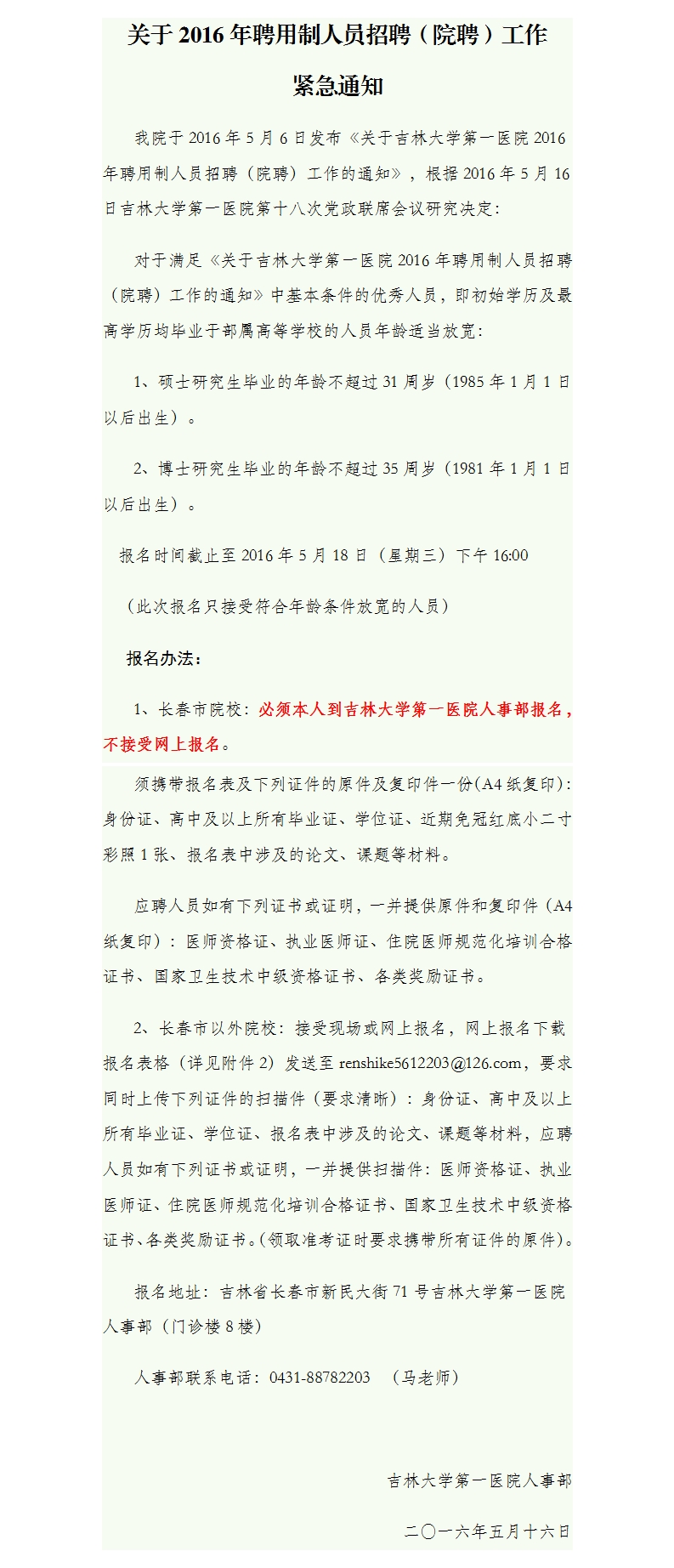 吉林大学第一医院招聘信息