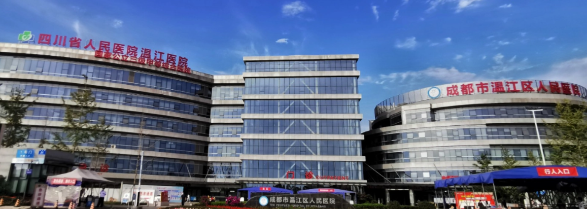 成都市温江区人民医院建院于1977年,2016年2月挂牌“四川省医学科学院·四川省人民医院温江医院”,是一所集医疗、急救、教学、科研、健保、康养于一体的国家公立三级甲等综合医院。医院总建筑面积14.8万平方米,编制床位1000张。