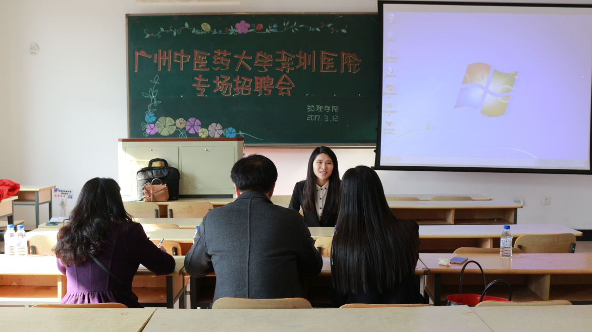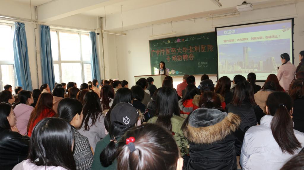 beat365中国官网于2017年3月12日上午8:30分在致知楼1217教室举办广州中医药大学深圳医院专场招聘会。参与人员有广州中医药大学深圳医院相关领导、beat365中国官网领导、beat365中国官网应届毕业生、其他学校护理专业应届毕业生以及beat365中国官网2014级学生。