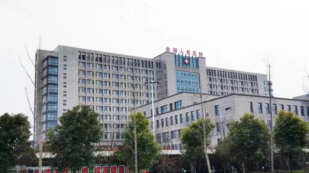 金湖县地处两省(江苏省、安徽省)三市(淮安市、扬州市、滁州市)交界处,南京1小时都市圈范围内。素有“鱼米之乡”、“江湖要塞小江南”之美誉。医院创建于1960年,医院占地面积140亩,建筑面积10万平方米,绿化占有率达30%。开放床位800张,是全县唯一一家二级甲等综合医院。是江苏护理职业学院附属医院,南京医科大学康达学院教学医院。与上海瑞金医院、上海复旦大学附属肿瘤医院、上海市肺科医院、江苏省人民医院、南京中大医院等知名医院建立了长期合作关系。医院现有职工900多名,其中博士及硕士研究生40余名,中高级职称400余名。医院每年选送优秀业务骨干到省级三甲医院进修学习。普外科、消化科、康复医学科为淮安市重点专科,微创技术、腔镜技术、无痛技术为医院特色技术。医院拥有德国西门子3.0T MRI、64排128层VCT、DSA、GE系列彩超、移动DR、体腔热灌注治疗机、毫米波治疗仪、放射性粒子治疗计划系统、泌尿超声介入系统、体外高频热疗机、X射线血管造影机、骨密度仪、口腔CT机、超高频乳腺钼靶、血液净化设备、高压氧治疗、先进的PCR实验室、全自动生化与免疫流水线、康复机器人、全自动发药机,以及进口超高清腹腔镜、宫腔镜、全套消化内镜等近20余种腔镜及内窥镜等一大批先进医疗设备与配置。