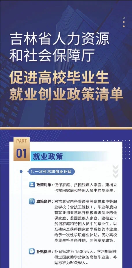 【创业有你,“就”在吉林】吉林省人力资源和社会保障厅促进高校毕业生就业创业政策清单